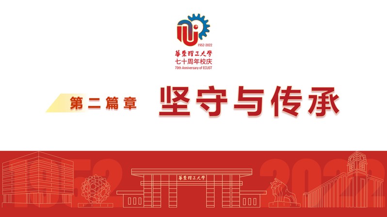 回望70年的办学历程,华理人始终传承勤奋求实、励志明德的精神品格。不论是“不畏艰险、迎难而上”的艰苦创业精神,还是“心有大我、无私奉献”的黄坡岭精神;不论是“矢志一流、顶天立地”的创新精神,还是“拼搏奋斗、为国争光”的乒乓精神;不论是“潜心耕耘、持之以恒”的汗水哲学,还是“学在华理、工程报国”的优良传统,这些薪火相传的精神财富,激励着一代代华理人心往一处想、劲往一处使,意气风发、昂首阔步,朝着高水平综合性研究型大学赓续前行。