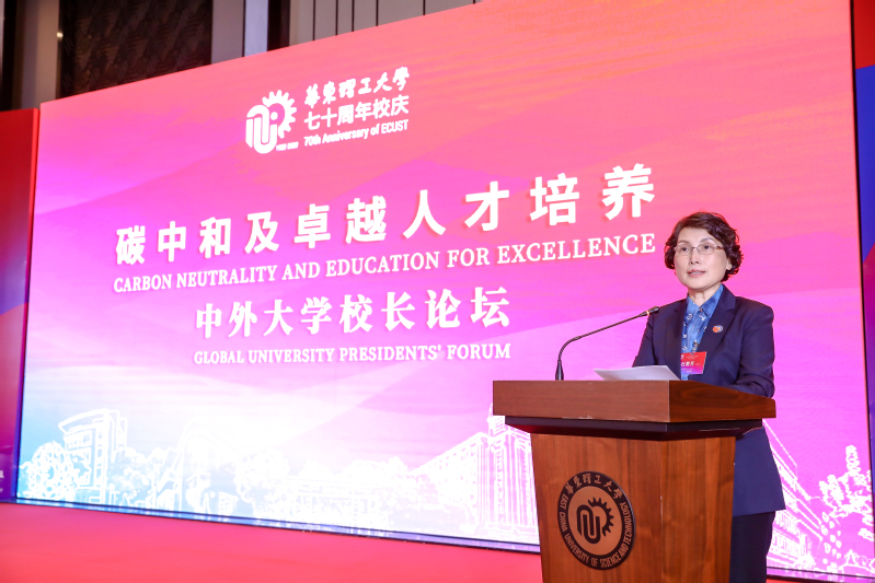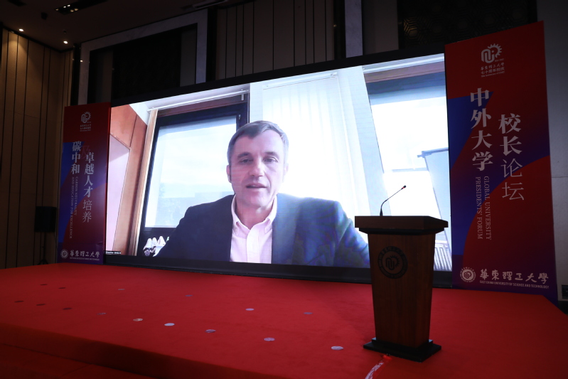 杜慧芳书记代表学校致辞。她首先对出席本次中外大学校长论坛的各位领导和嘉宾表示热烈的欢迎和衷心的感谢,并介绍了学校的历史沿革以及近年来的事业发展情况。她指出,当前,全国上下正在深入学习宣传贯彻党的二十大精神,实施“双碳”战略是党中央作出的重大战略决策,是实现全球气候可持续发展的迫切需要,是推动高质量发展的内在要求。希望以此次论坛为契机,推动碳中和领域学科交叉创新和急需紧缺人才培养,与全球伙伴院校一道,共同为推动经济绿色低碳转型与高质量发展,为世界可持续发展和构建人类命运共同体作出新的贡献。